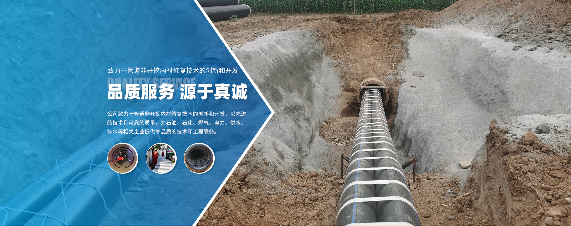 以安全、質量為第一,通過非開挖修復工藝延長管道使用壽命,讓舊管道再煥新生,為客戶提供優質地下管網解決方案。